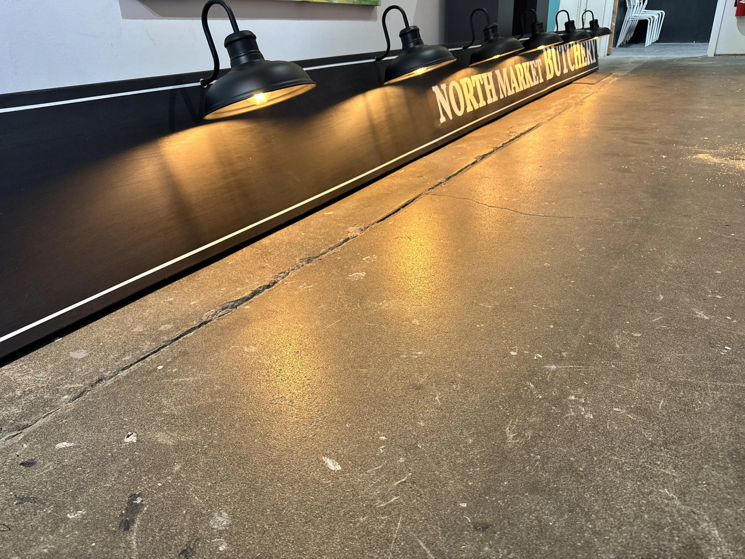 In addition to working with the North Market as a client, we also often help design signage and storefront designs for the various tenants at the market. We assisted in bringing the new butcher’s stall to life with some weathered lit signage and some classic text vinyl on the glass cases. The end result is something that feels simultaneously fresh and like it has been there for a long time.
